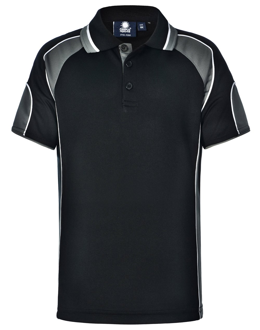 White colour piping on Black/Aqua, Black/Ash, Black/Orange, Black/Red, Navy/Aqua and Navy/Red. Ash colour piping on other colour ways.