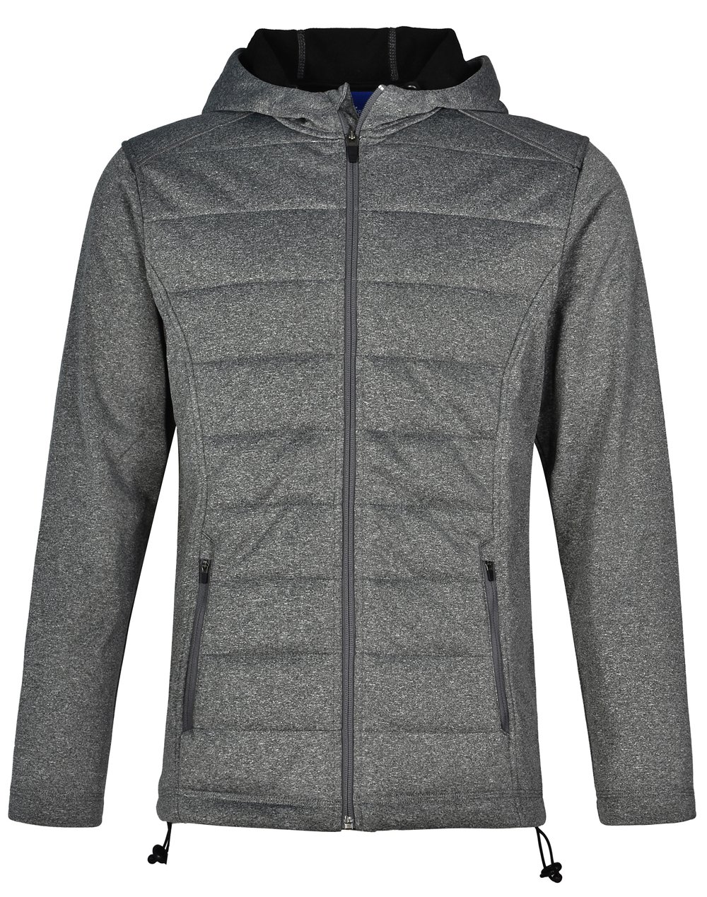 Bonded Cationic Heather quilted Jacket has a brushed inside adjustable hoodie. The jacket has a front full zip as well as front zip pockets.