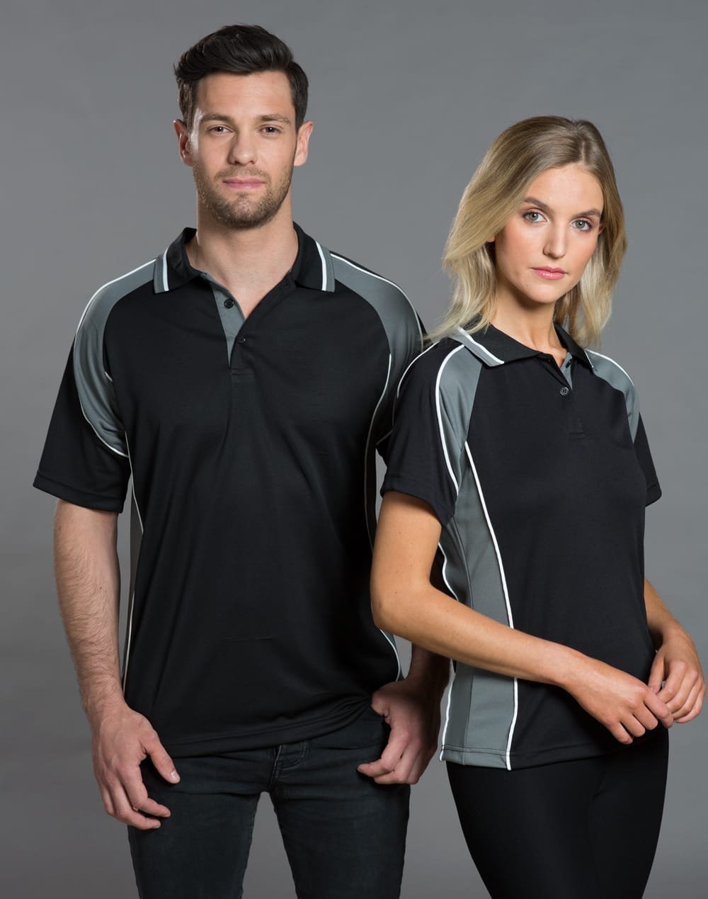 Material: 100% Polyester CoolDry® Mesh, 160 GSM. Description: Featuring a sleek, flat-knitted collar, this item showcases contrasting panels on the sides, inside placket, and collar for added style. Brand: Winning Spirit