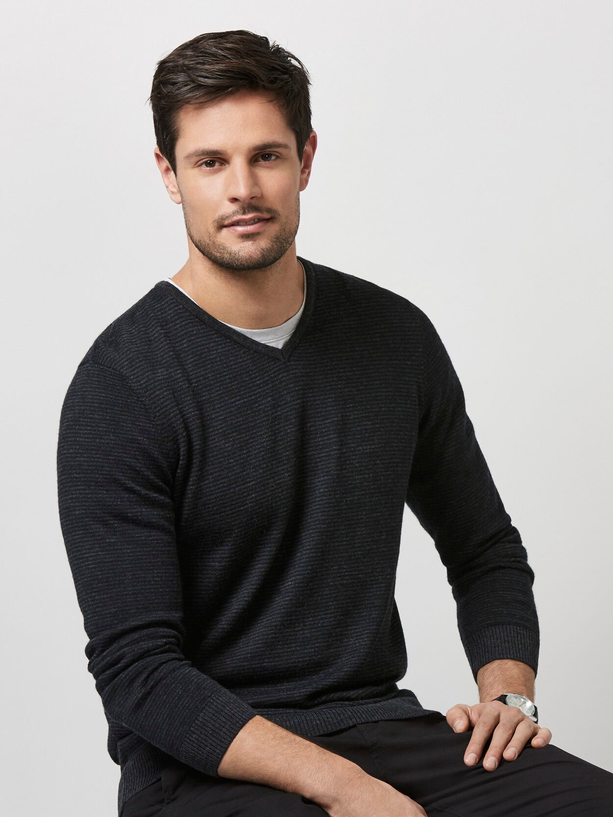 Sizes. XS – 3XL, 5XL Fabric – 100% Merino Wool – 12 Gauge – Fine yarn Features – Fully fashioned, “V” neck basque – Contemporary styling and fit