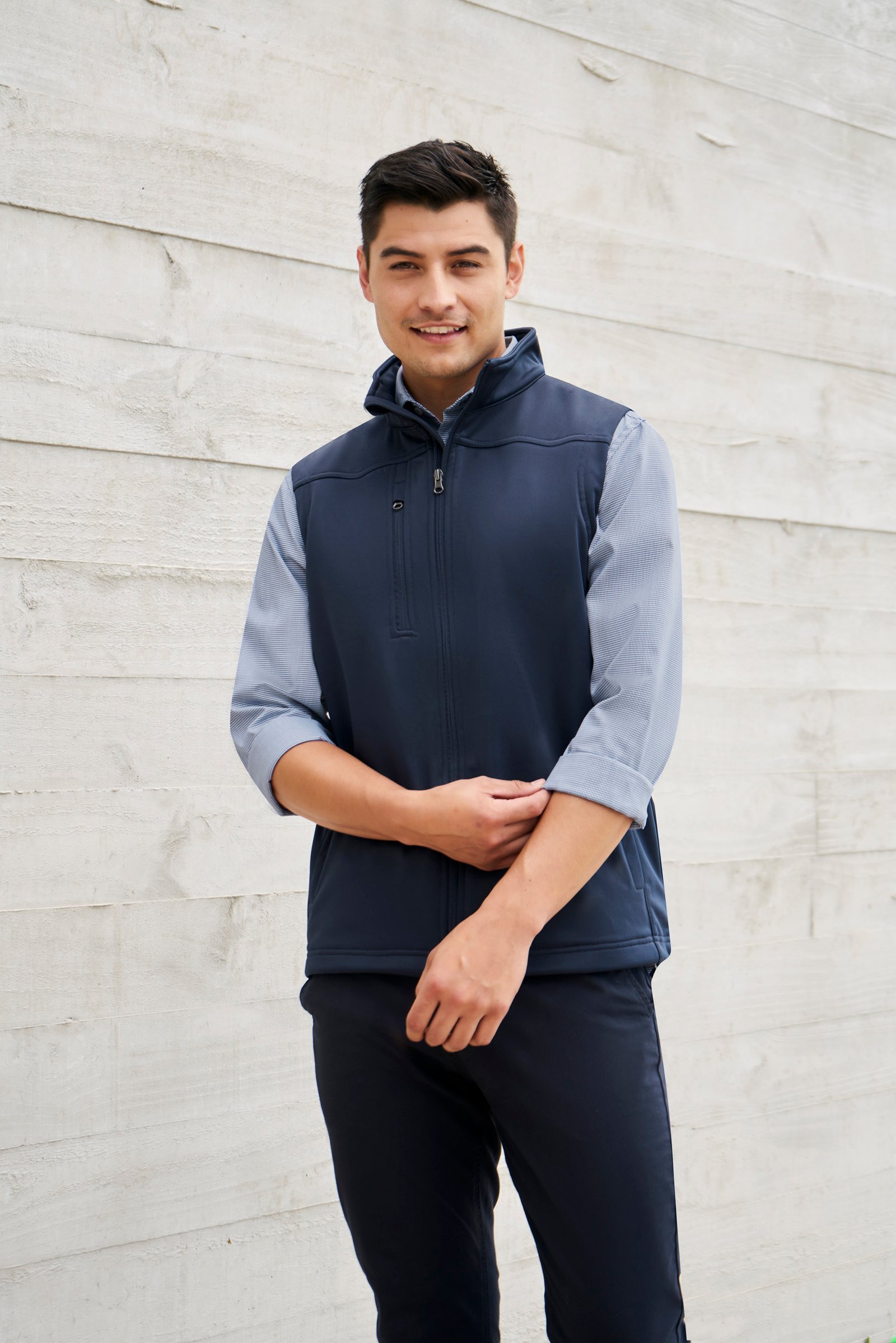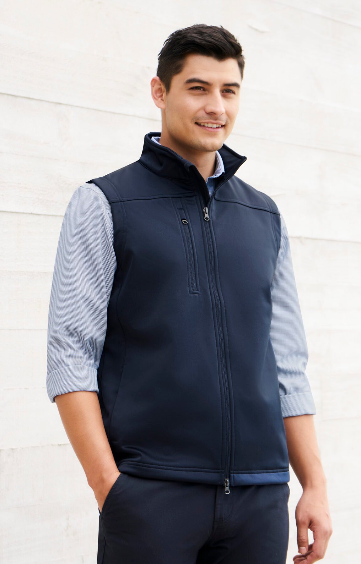 – Outer right chest zippered vertical pocket with metal puller and audio port access