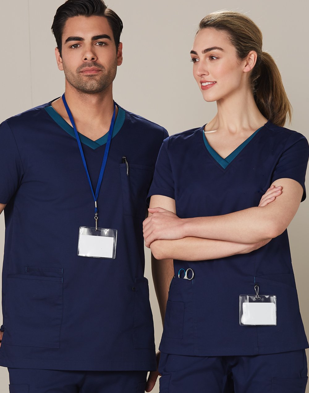 • Front pocket stitching matches v-neck contrast creating the opportunity to support role differentiation where required.