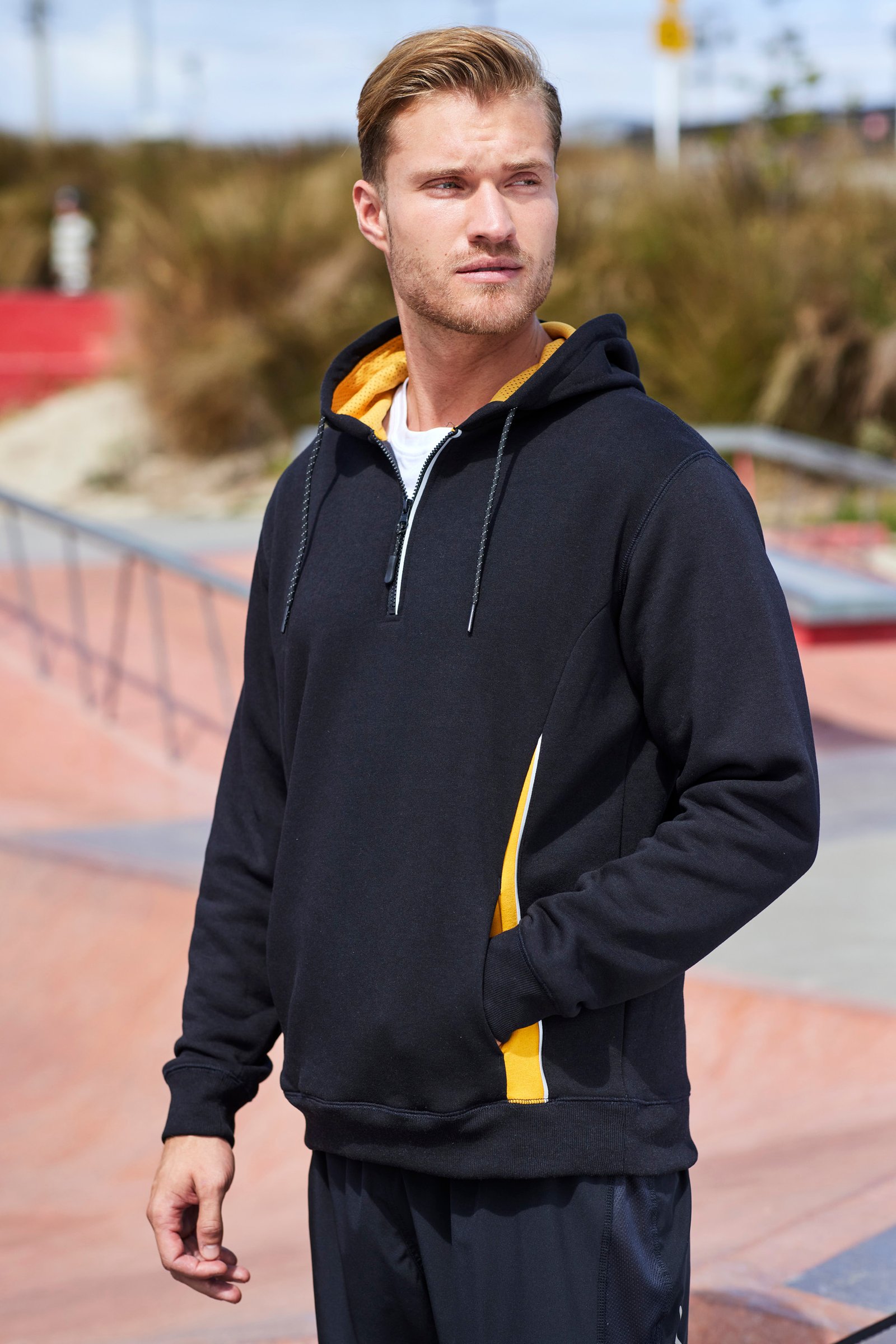 – Hand warmer side pockets