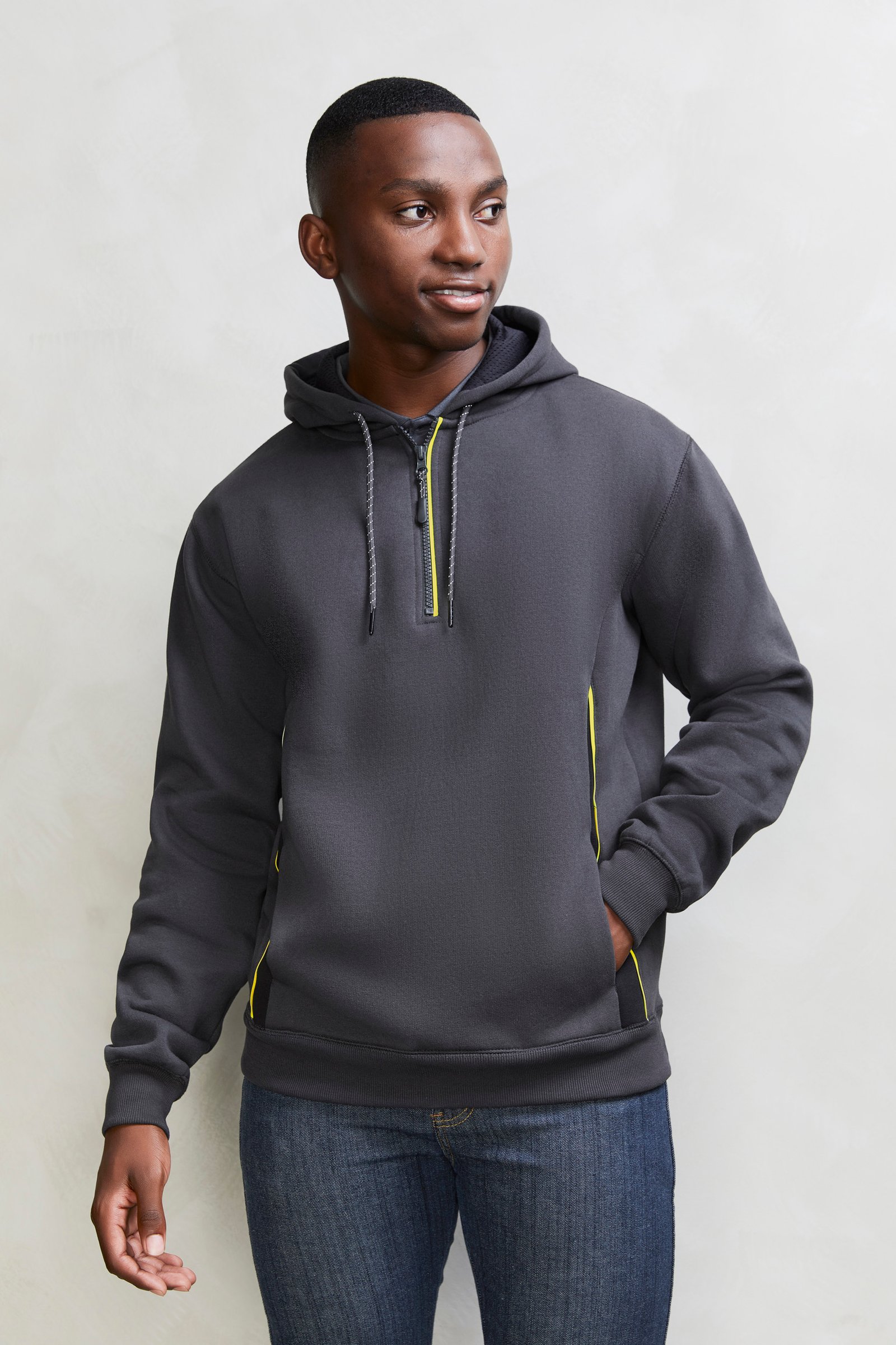 – Modern ½ zip neck for easy on & off