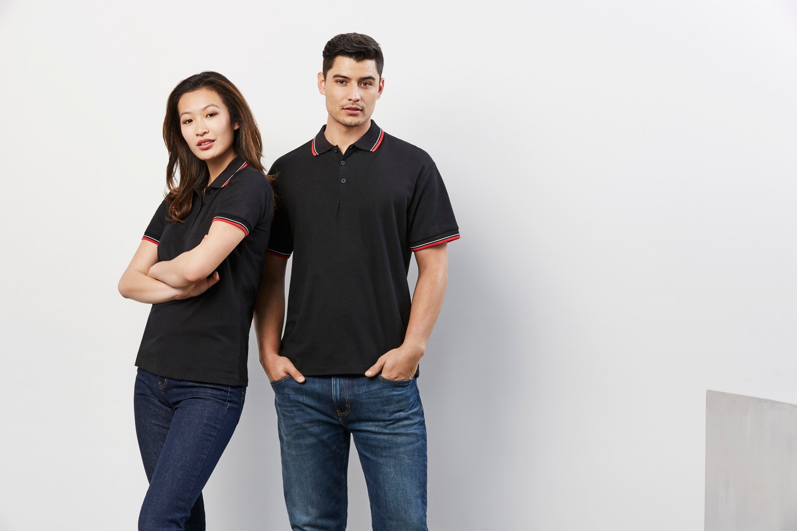 Sizes 8 – 24 Fabric – 50% Cotton inner, 50% BIZ COOL™ Polyester Pique Outer – 170 GSM – UPF rating – Good Features – Matching knitted twin stripe collar and cuff