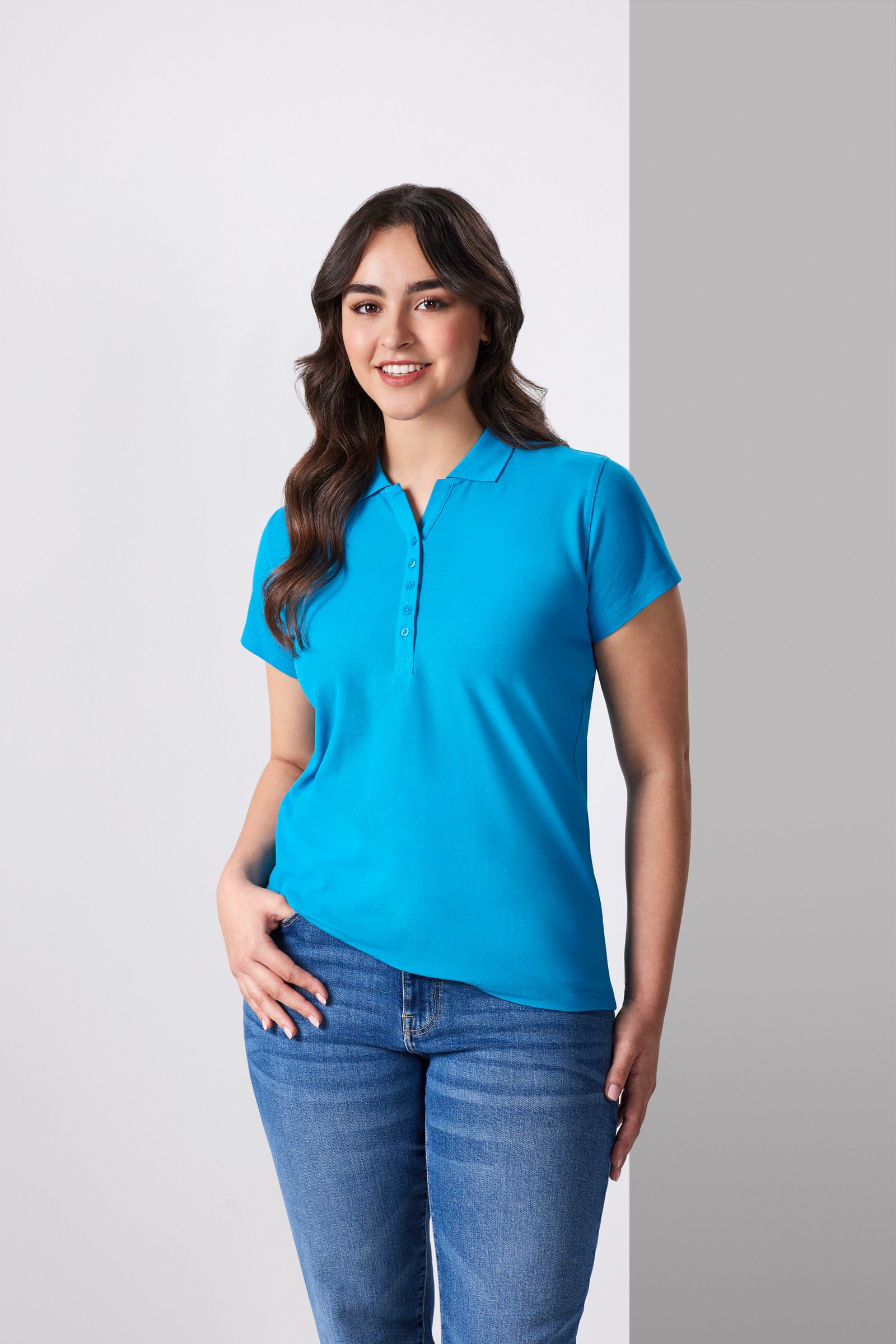 – 65% Polyester, 35% Cotton Pique