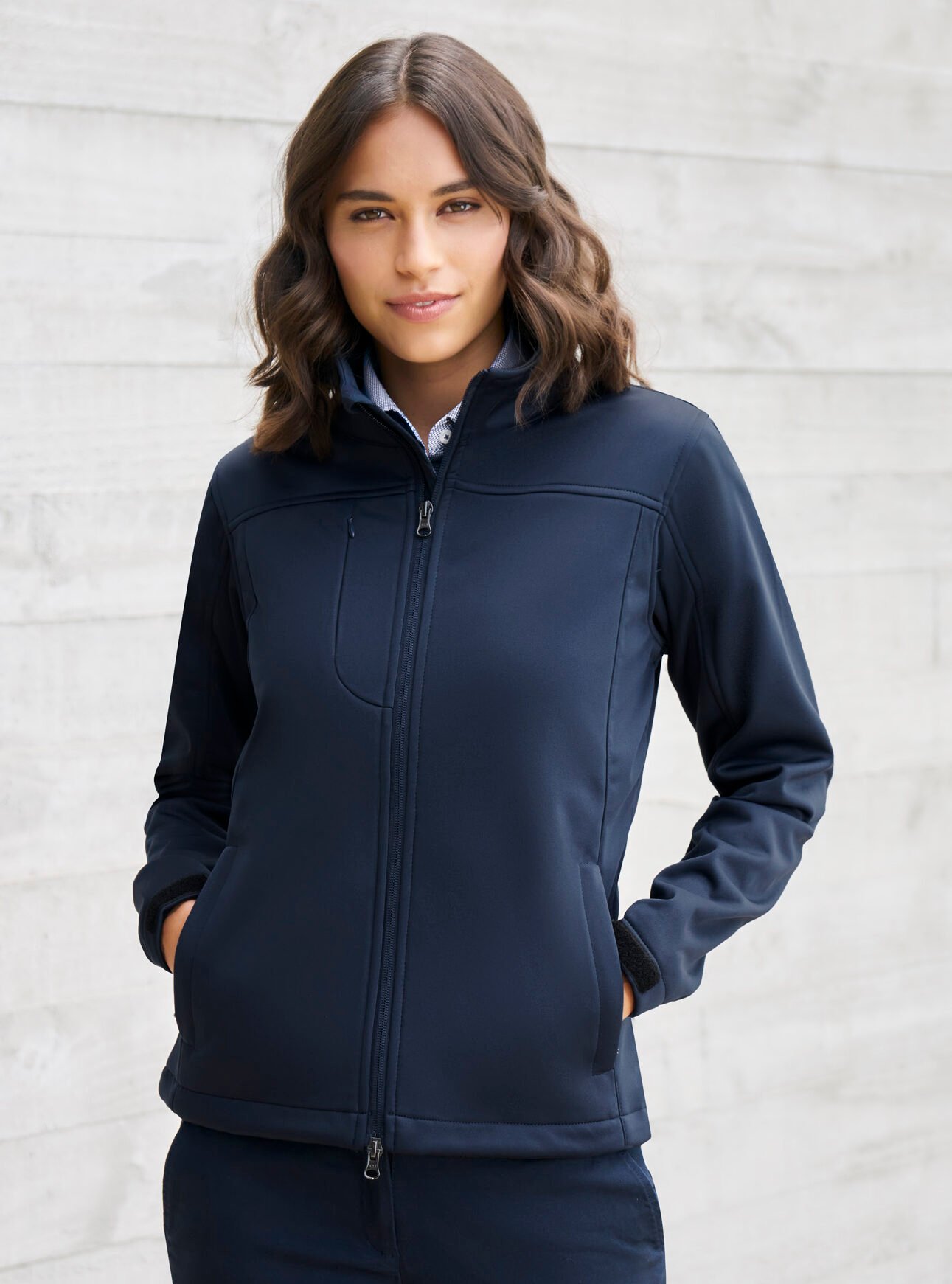– Outer right chest zippered vertical pocket with metal puller and audio port access